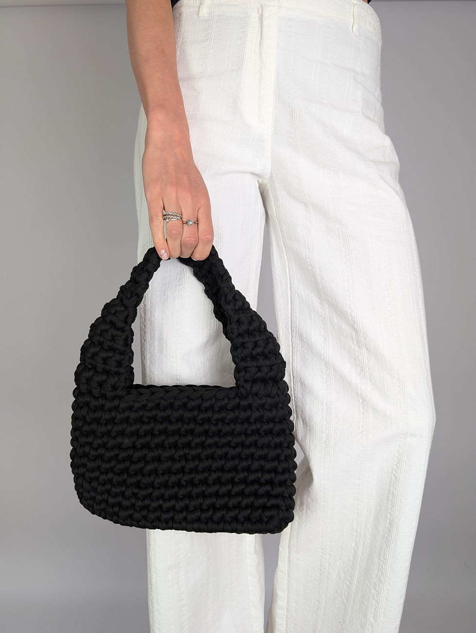 Grovt virkad svart väska