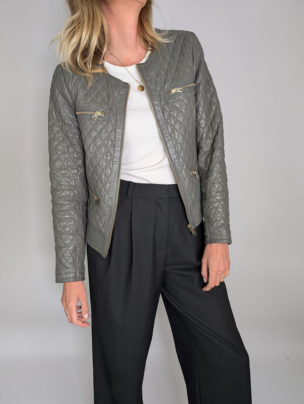 Oakwood khakigrön quiltad skinnjacka (L)